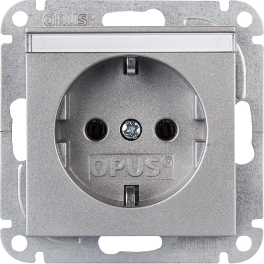 OPUS 55 Wandcontactdoos met randaarde en tekstveld zilver-aluminium